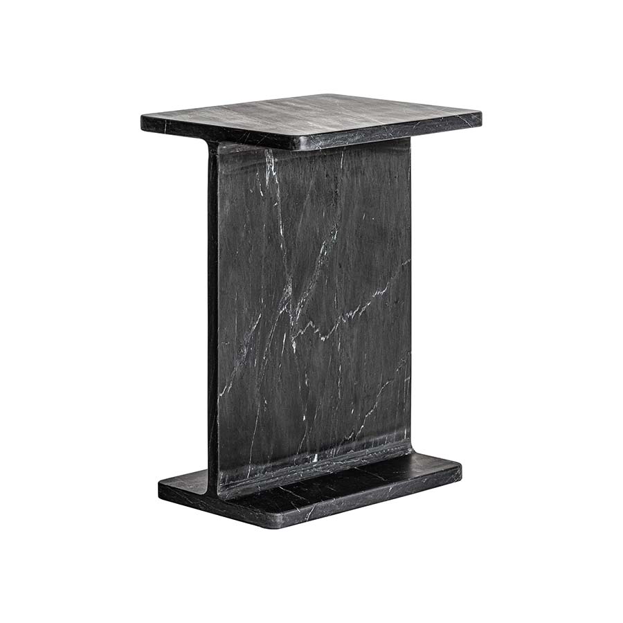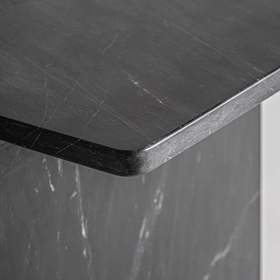 • Mesa auxiliar Marquina de estilo art deco fabricado en mármol en color negra con acabado mate.