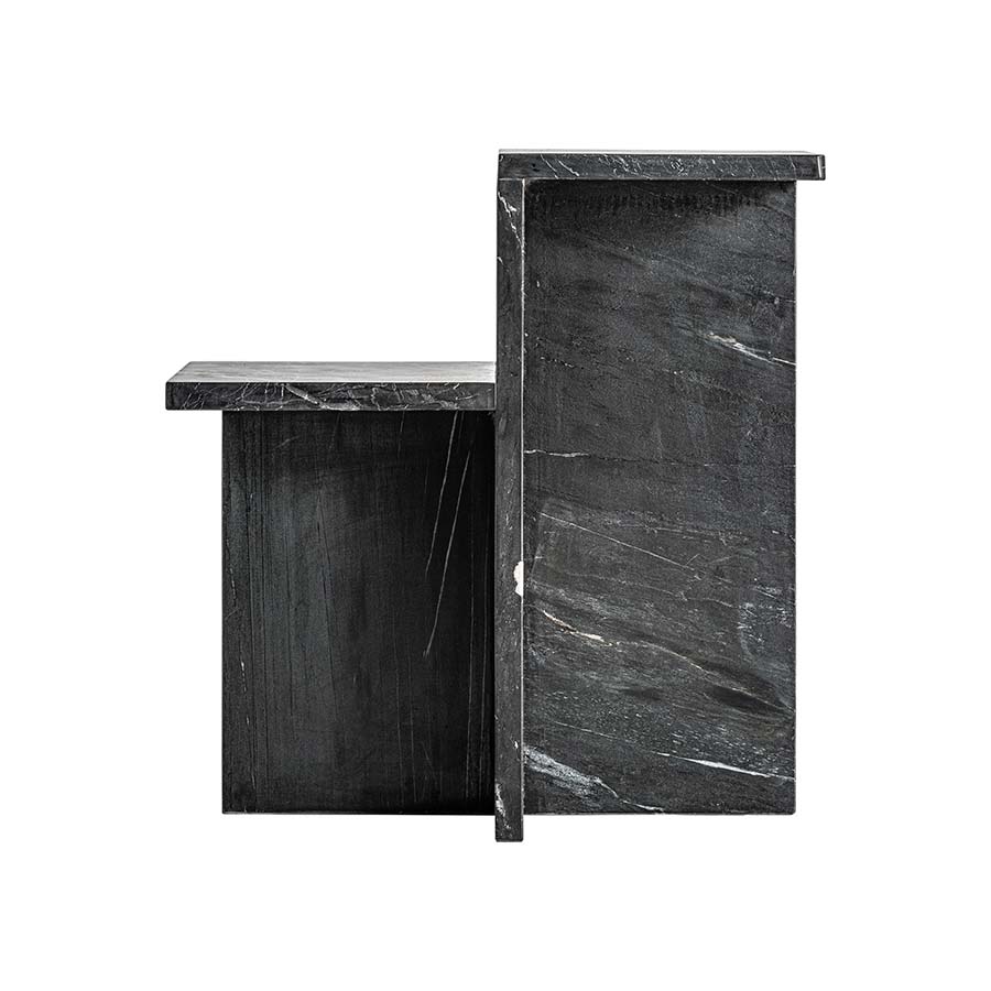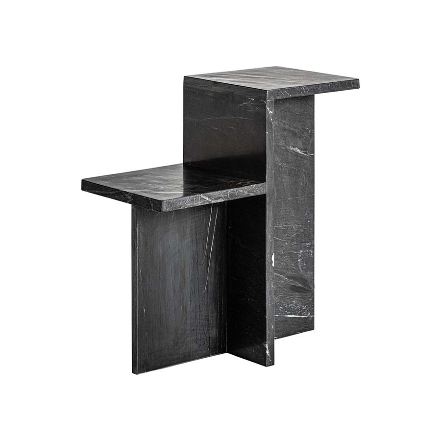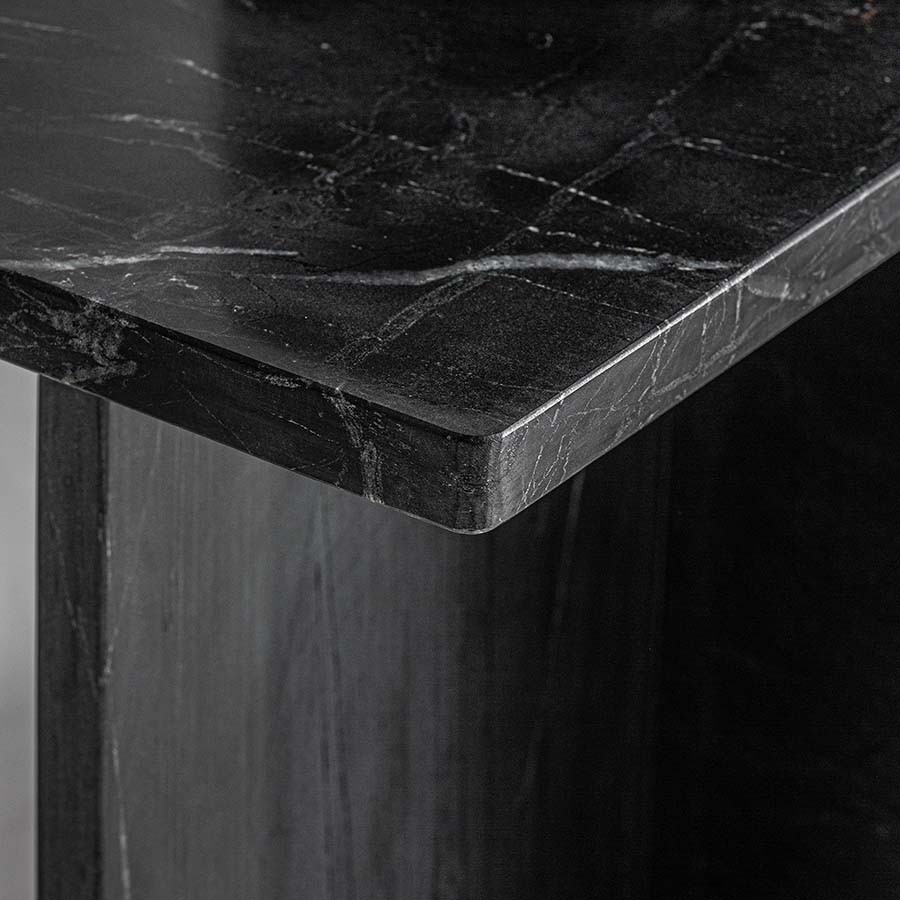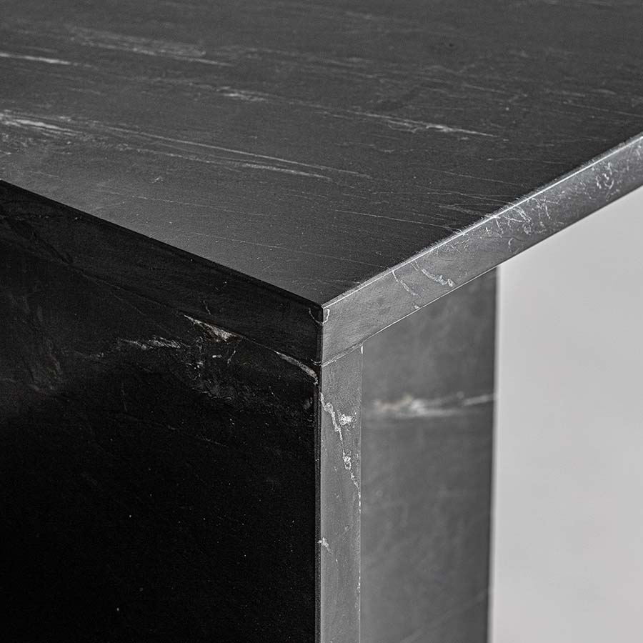 Mesa auxiliar Marquina de estilo art deco fabricado en mármol en color negra con acabado mate.