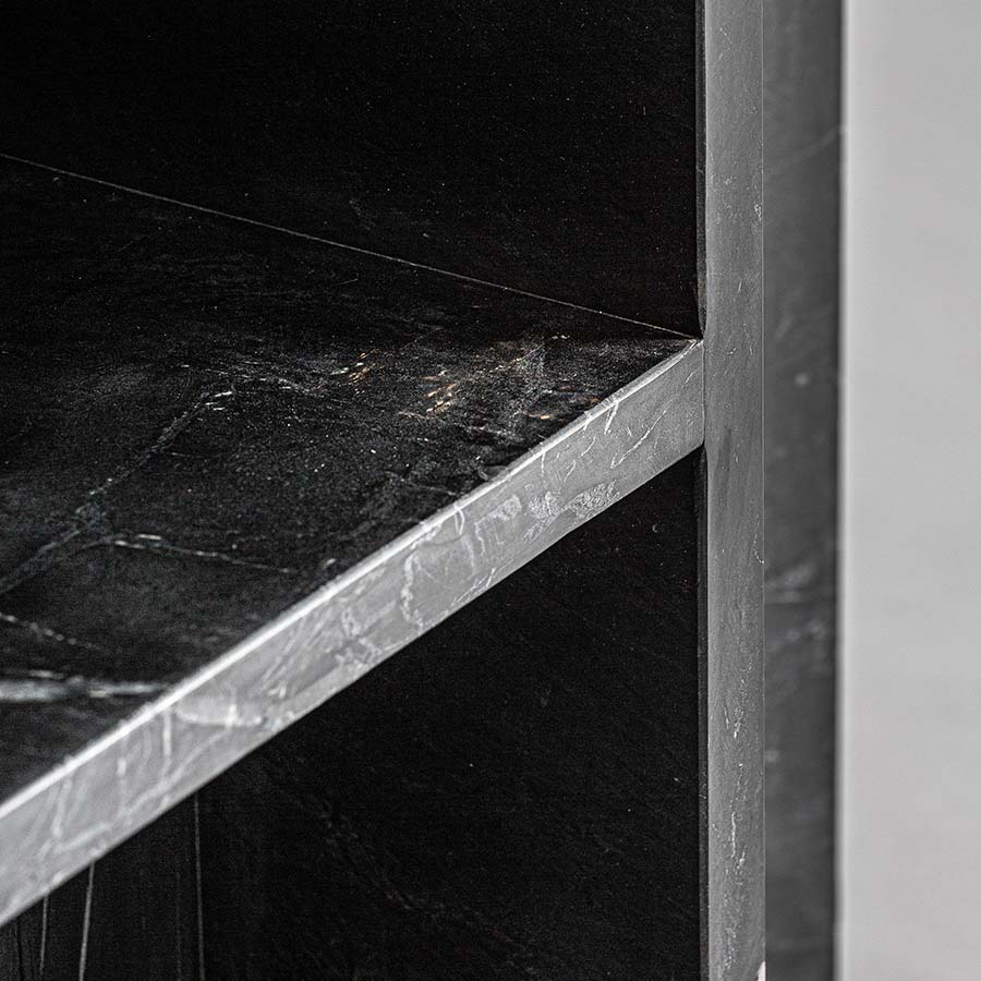 • Mesa auxiliar Marquina de estilo art deco fabricado en mármol en color negra con acabado mate.