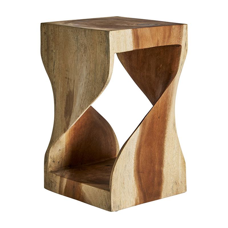 Mesa auxiliar Maun de estilo étnico fabricado en madera de acacia en color marrón.