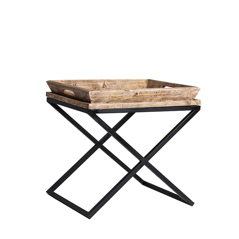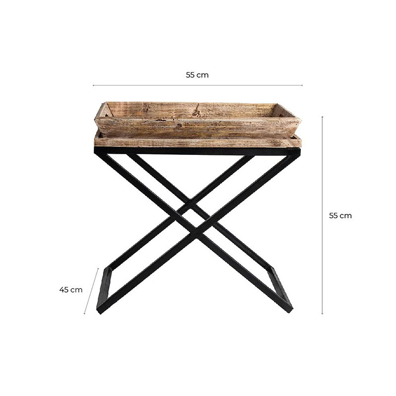 Mesa auxiliar Newak de estilo industrial fabricado en madera de mango en color negro con acabado envejecido combinado con hierro en color natural.