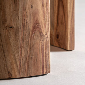 Mesa auxiliar noyers, en color marrón, de estilo art deco. Fabricado en travertino, combinado con madera de acacia. Producto desmontable.