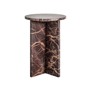 Mesa auxiliar Ruskeala de estilo contemporáneo fabricado en mármol en color tonos oscuros con acabado mate.