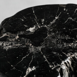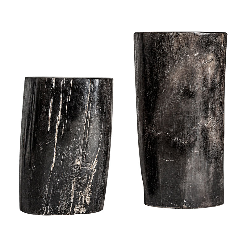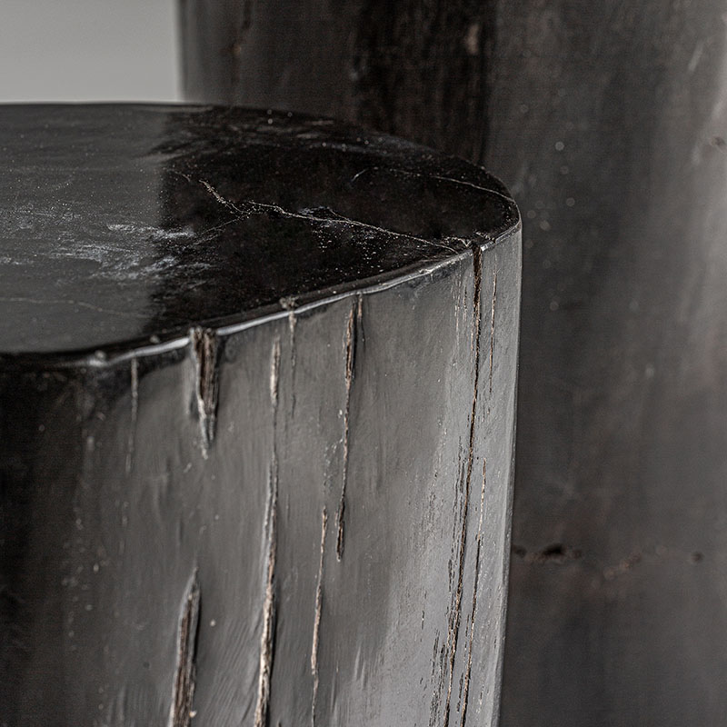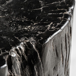 Mesa auxiliar telti de estilo étnico fabricado en madera petrificada en color marrón con acabado envejecido.