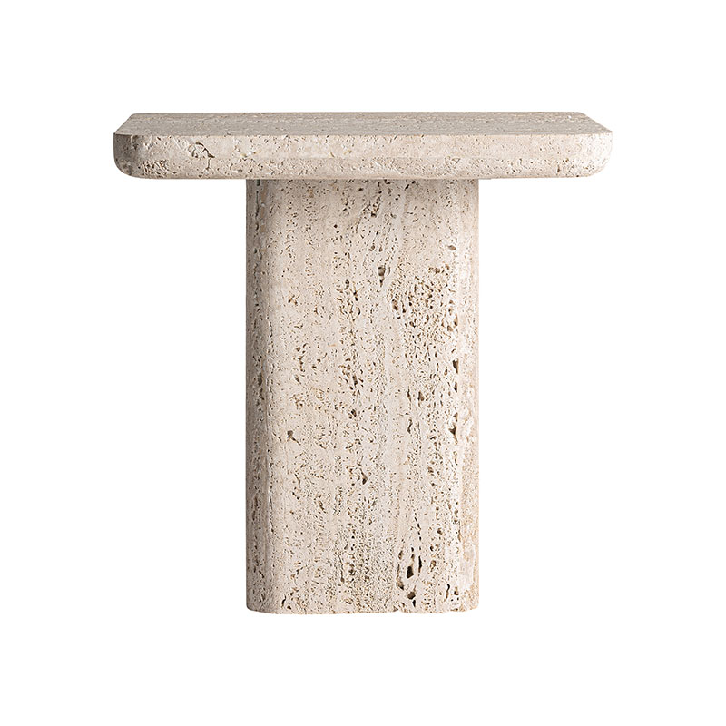 Mesa auxiliar theuville de estilo art deco fabricado en travertino en color beige. Producto desmontable.