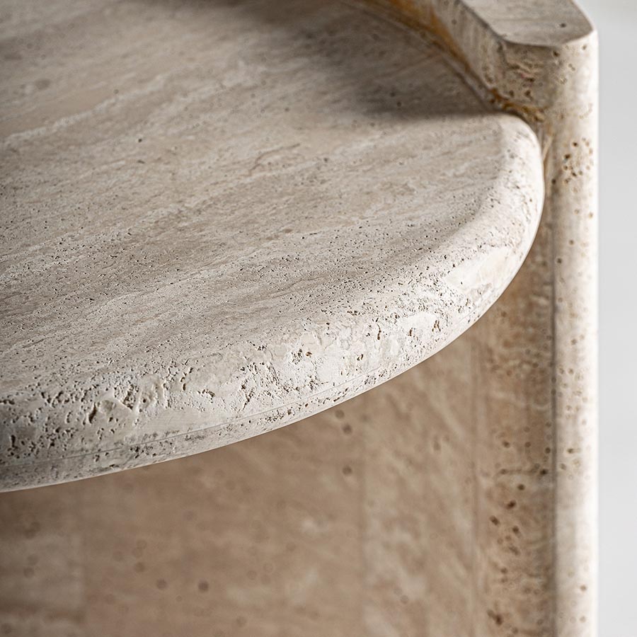 Mesa auxiliar Thiennes de estilo art deco fabricado en travertino en color beige.
