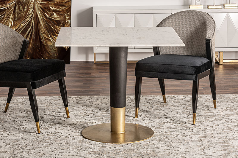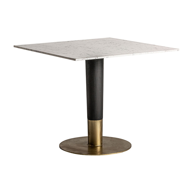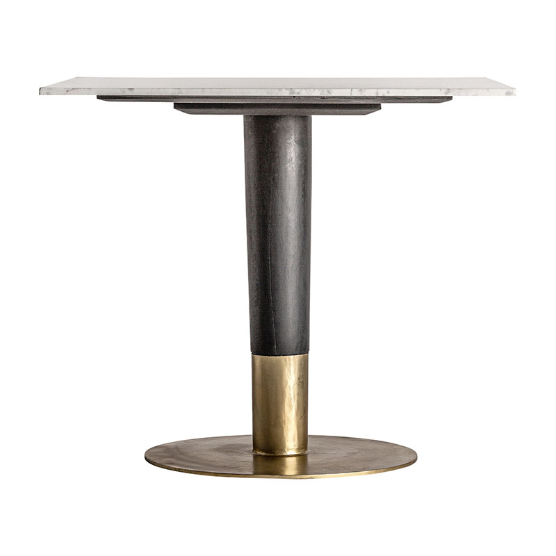 Mesa bar aleria, en color negro/blanco/oro, de estilo art deco. Fabricado en mármol, combinado con madera de mango y acero. Producto desmontable.