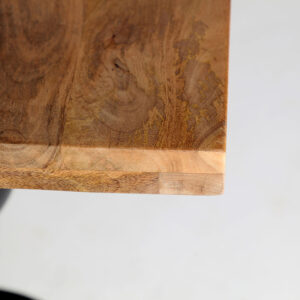 Mesa bar bugle de estilo industrial fabricado en madera de mango en color negro combinado con hierro en color natural. Producto desmontable.