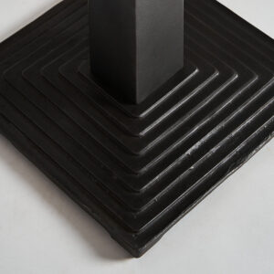 Mesa bar Than de estilo art deco fabricado en mármol sintético en color negro con acabado brillo combinado con acero en color oro y hierro. Piedra de granito con acabado mármol. Producto desmontable.
