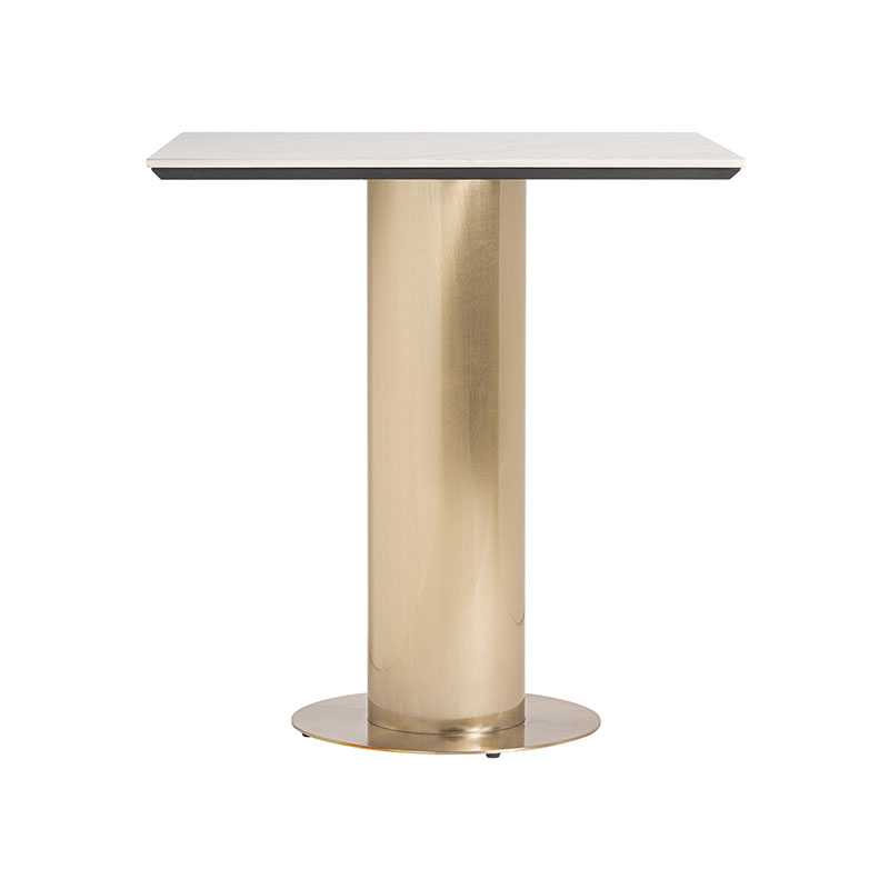 Mesa bar naustdal de estilo art deco fabricado en acero en color blanco combinado con porcelánico en color oro. Producto desmontable.
