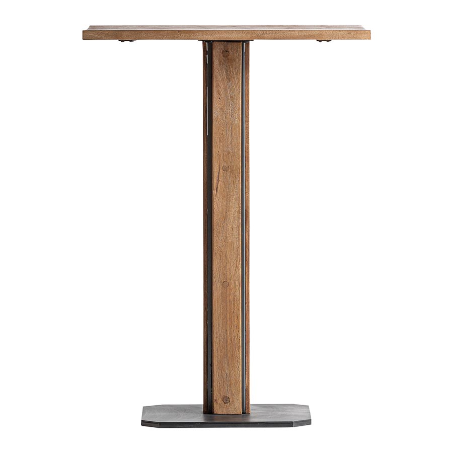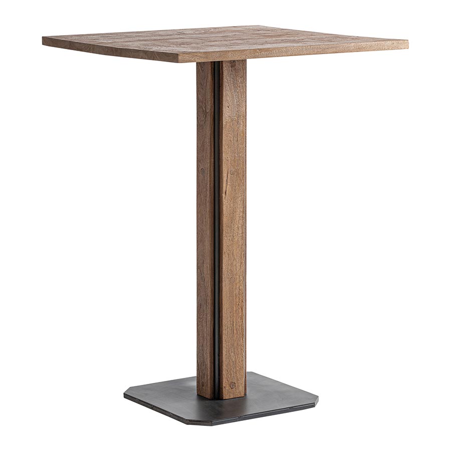 Mesa bar Rho de estilo contemporáneo fabricado en madera de mango en color marrón claro combinado con hierro en color negro. Producto desmontable.
