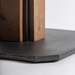 Mesa bar bugle de estilo industrial fabricado en madera de mango en color negro combinado con hierro en color natural. Producto desmontable.