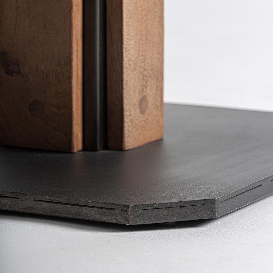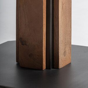 Mesa bar kimball de estilo colonial fabricado en madera de mango en color marrón combinado con hierro en color negro. Producto desmontable.