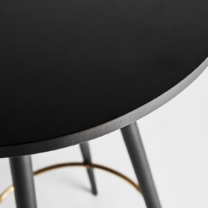 MESA BAR SILANUS, EN COLOR NEGRO/ORO, DE ESTILO ART DECO. FABRICADO EN PORCELANA, COMBINADO CON MADERA MINDI. PRODUCTO DESMONTABLE.