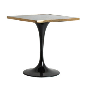 Mesa bar Than de estilo art deco fabricado en mármol sintético en color negro con acabado brillo combinado con acero en color oro y hierro. Producto desmontable.