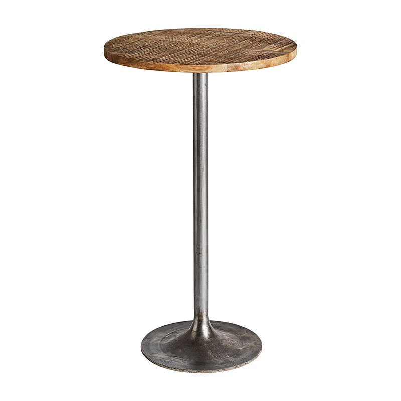 Mesa bar Tyler de estilo vintage fabricado en hierro en color gris combinado con madera de mango en color natural. Producto desmontable.