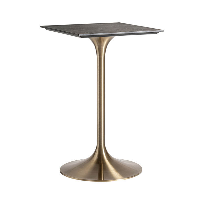 Mesa bar ullaland de estilo art deco fabricado en acero en color oro combinado con porcelánico en color negro. Producto desmontable.