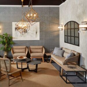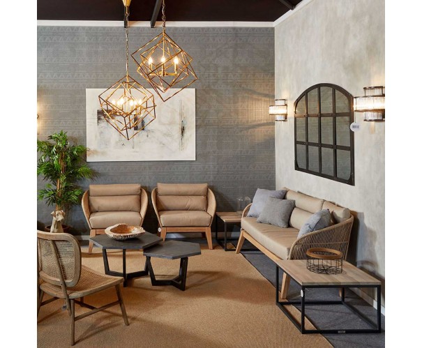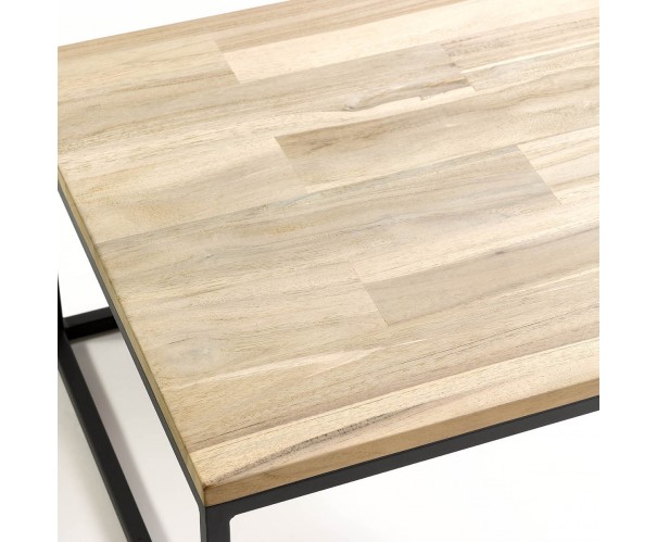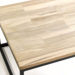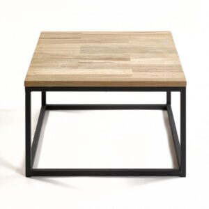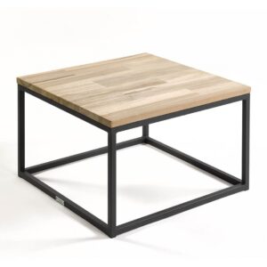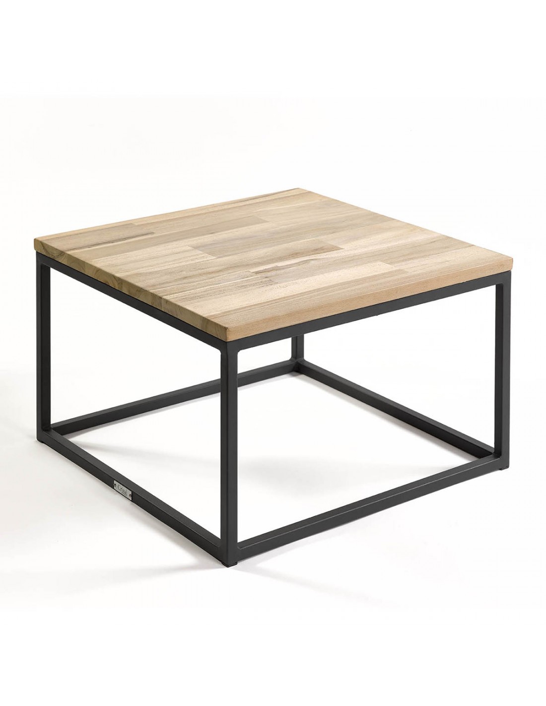 Mesa de centro cuadrada para exterior de metal color grafito y madera de teca. Ideal para zonas de descanso en tu ambiente de exterior o porche.