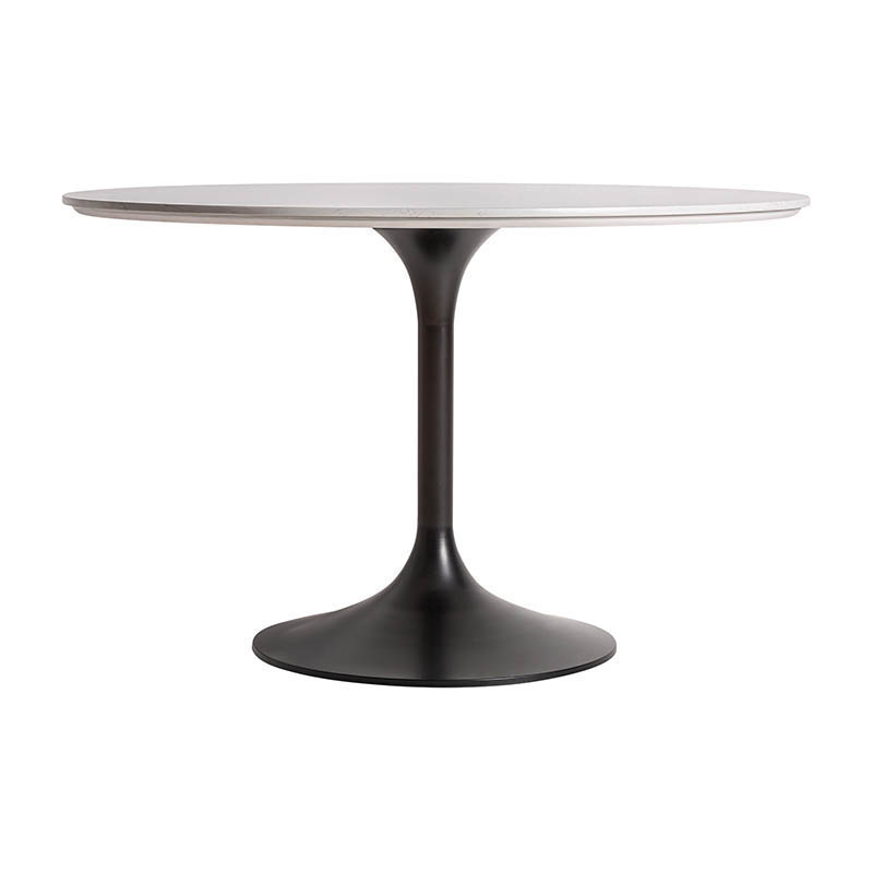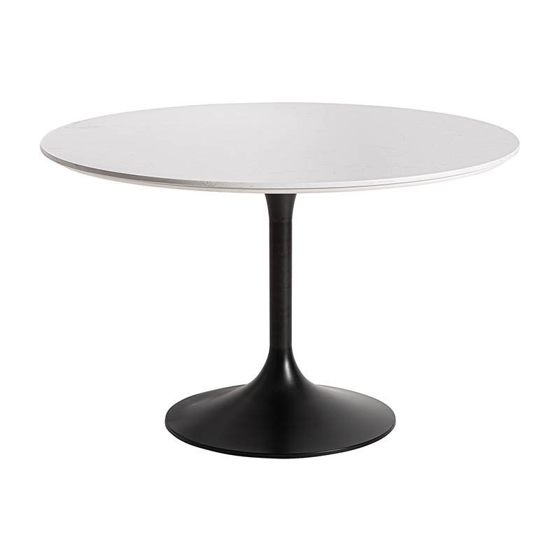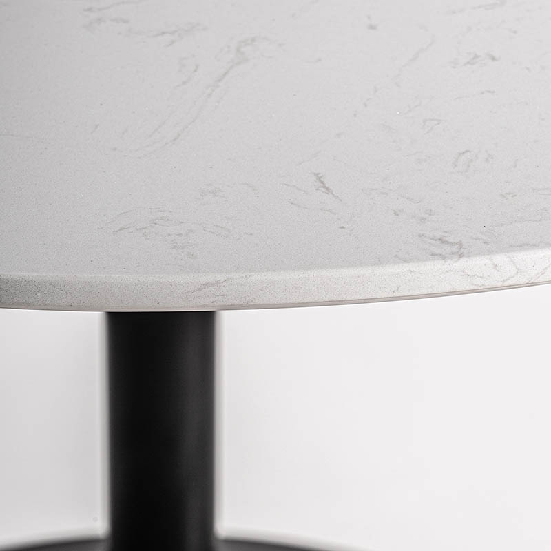 Mesa comedor. Fabricado en porcelánico, combinado con acero.
