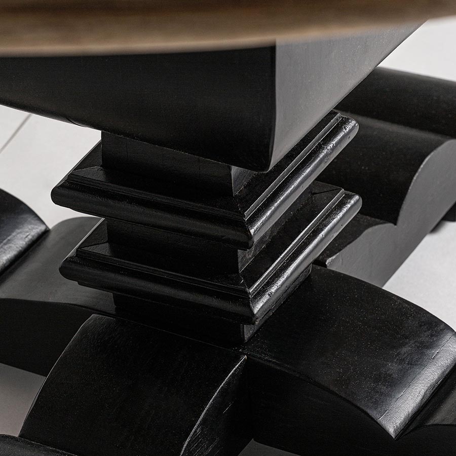 Mesa comedor abo de estilo colonial fabricado en madera de mango en color negro en color marrón. Producto desmontable.