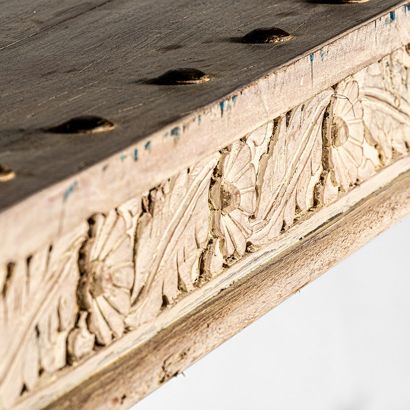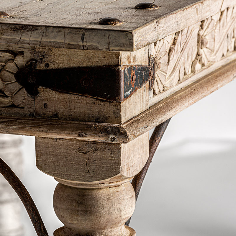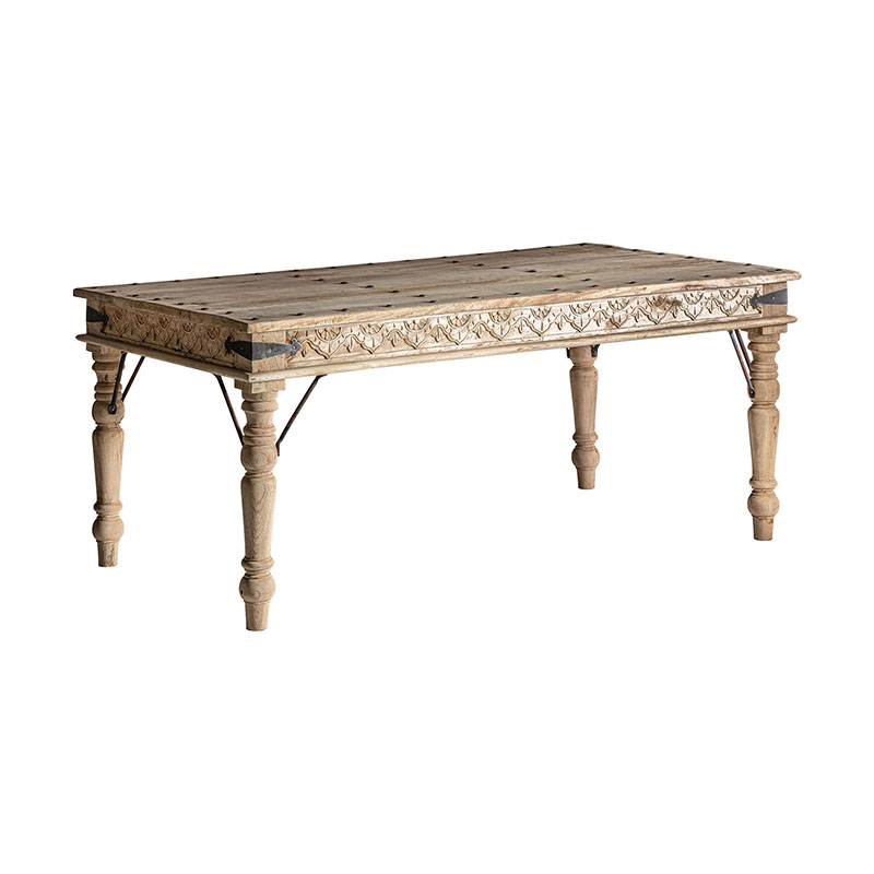 Mesa comedor betan, en color marrón envejecido, de estilo étnico. Fabricado en madera de mango.