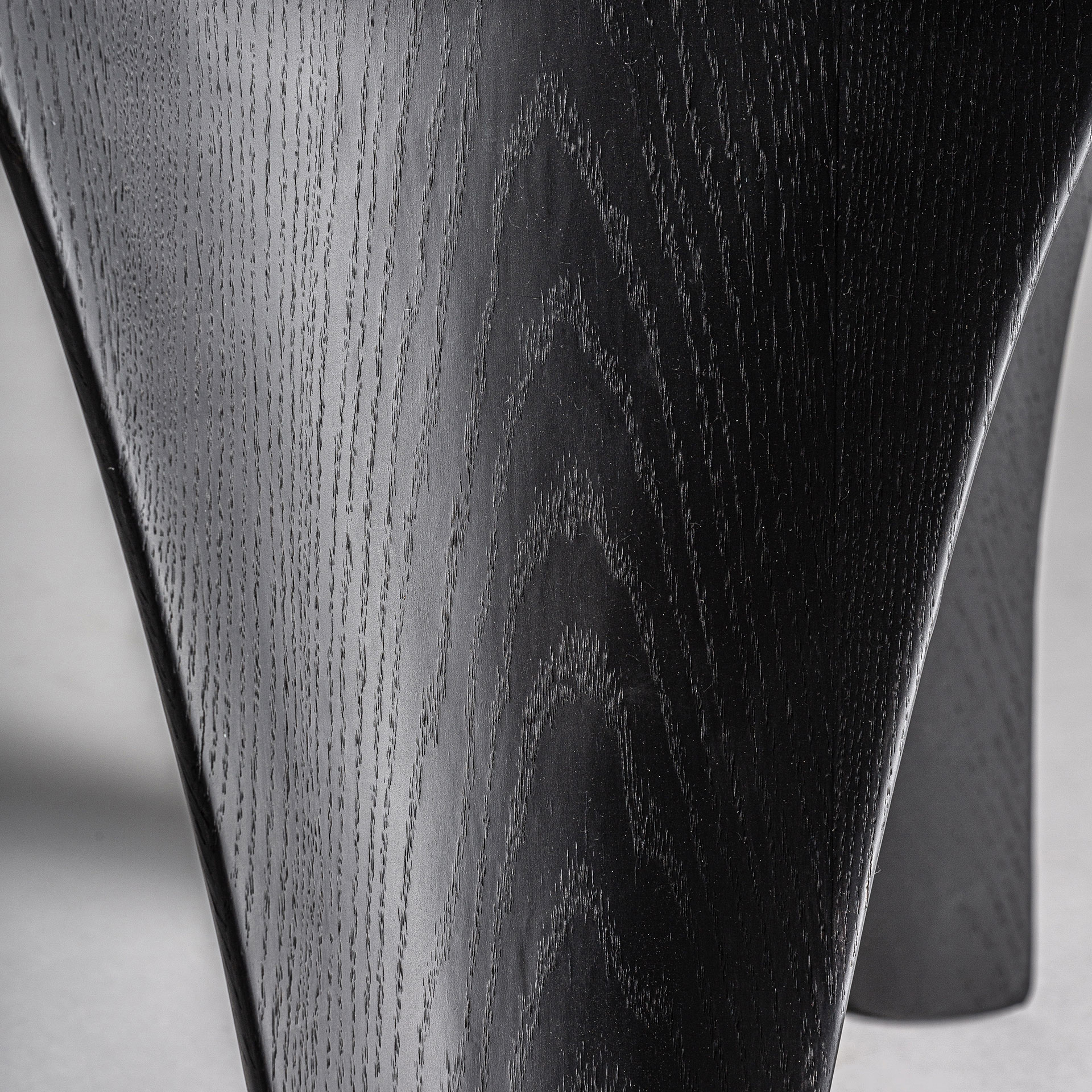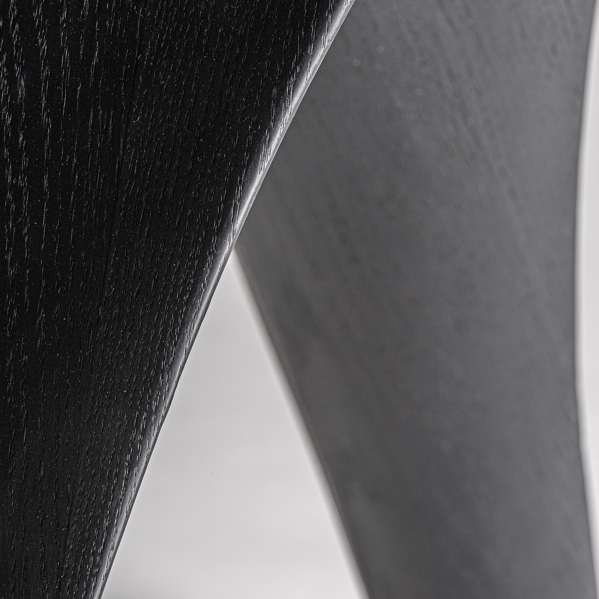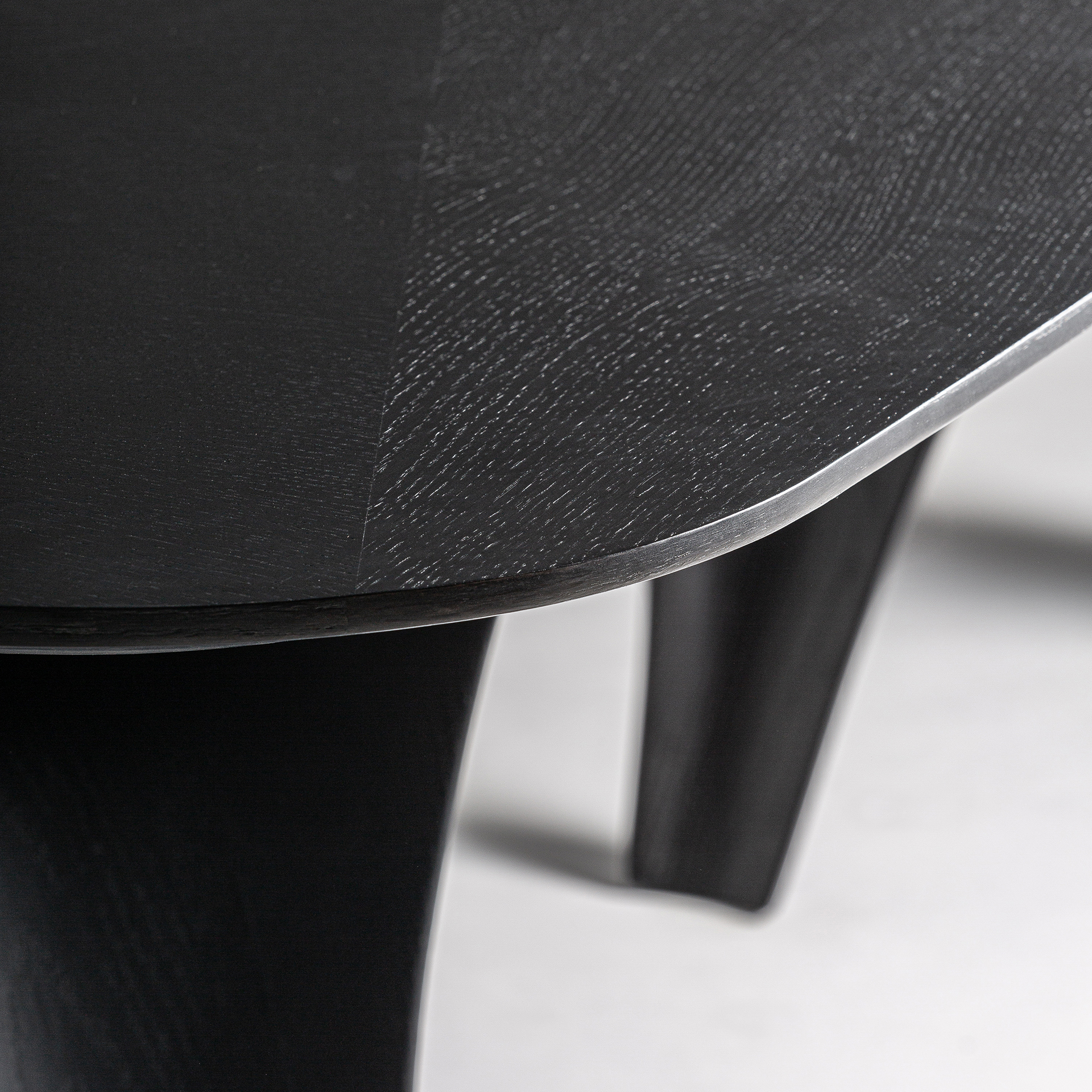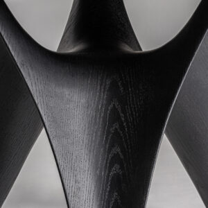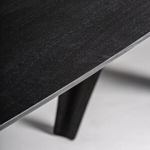 Mesa comedor bilzen de estilo contemporáneo fabricado en chapa de roble en color negro combinado con madera dm y fibra de vidrio.