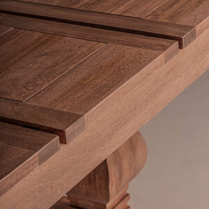 Mesa comedor brandet de estilo colonial fabricado en madera de mango en color marrón. Producto desmontable extensible.
