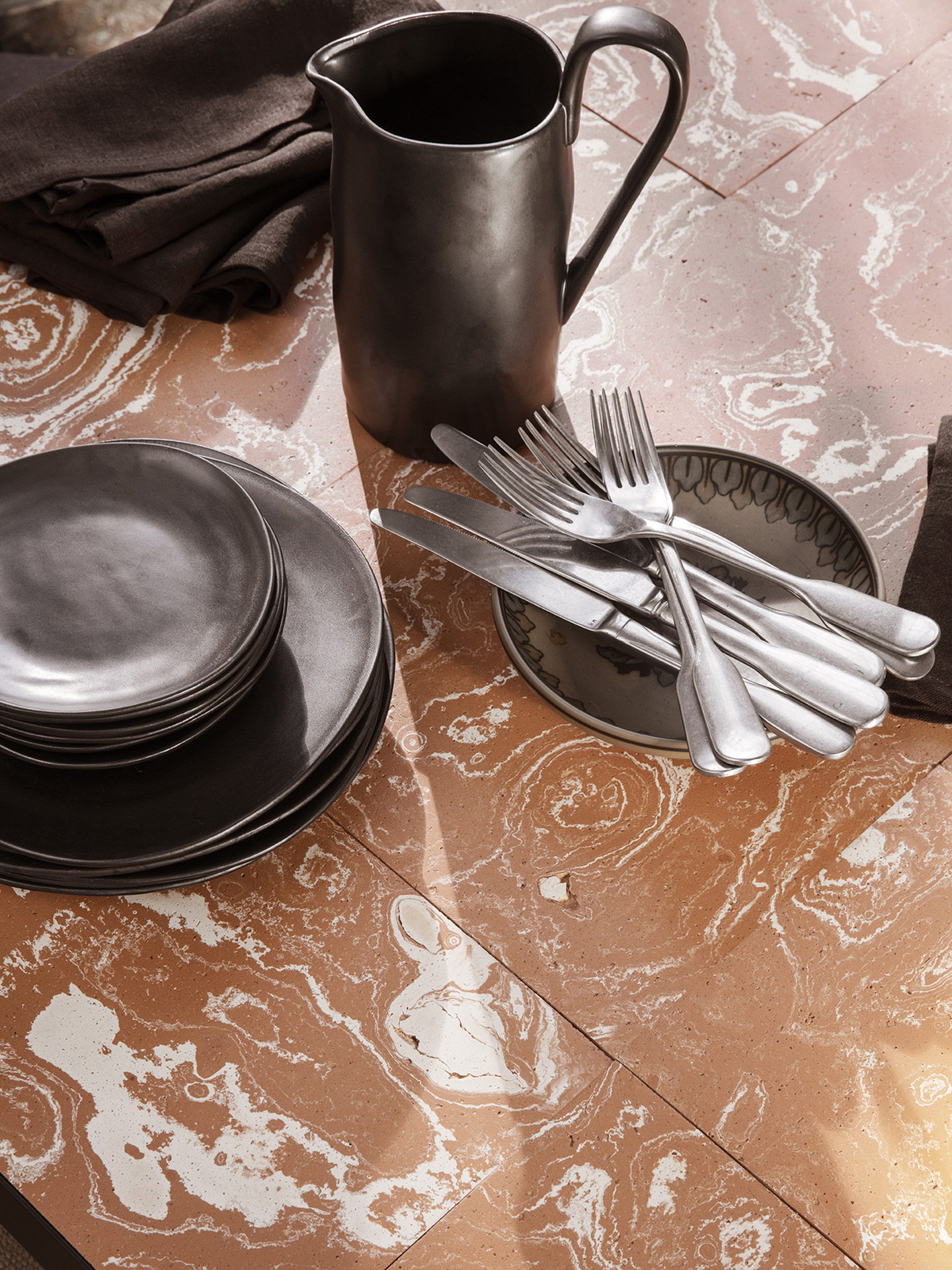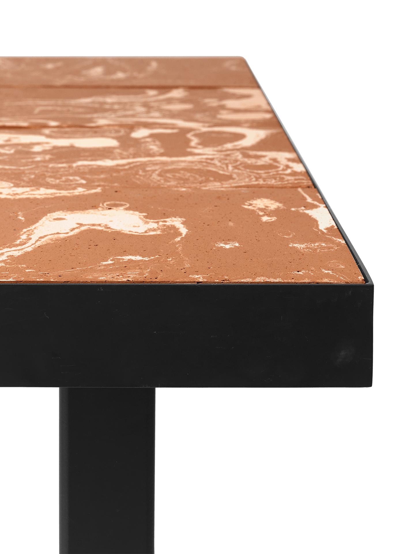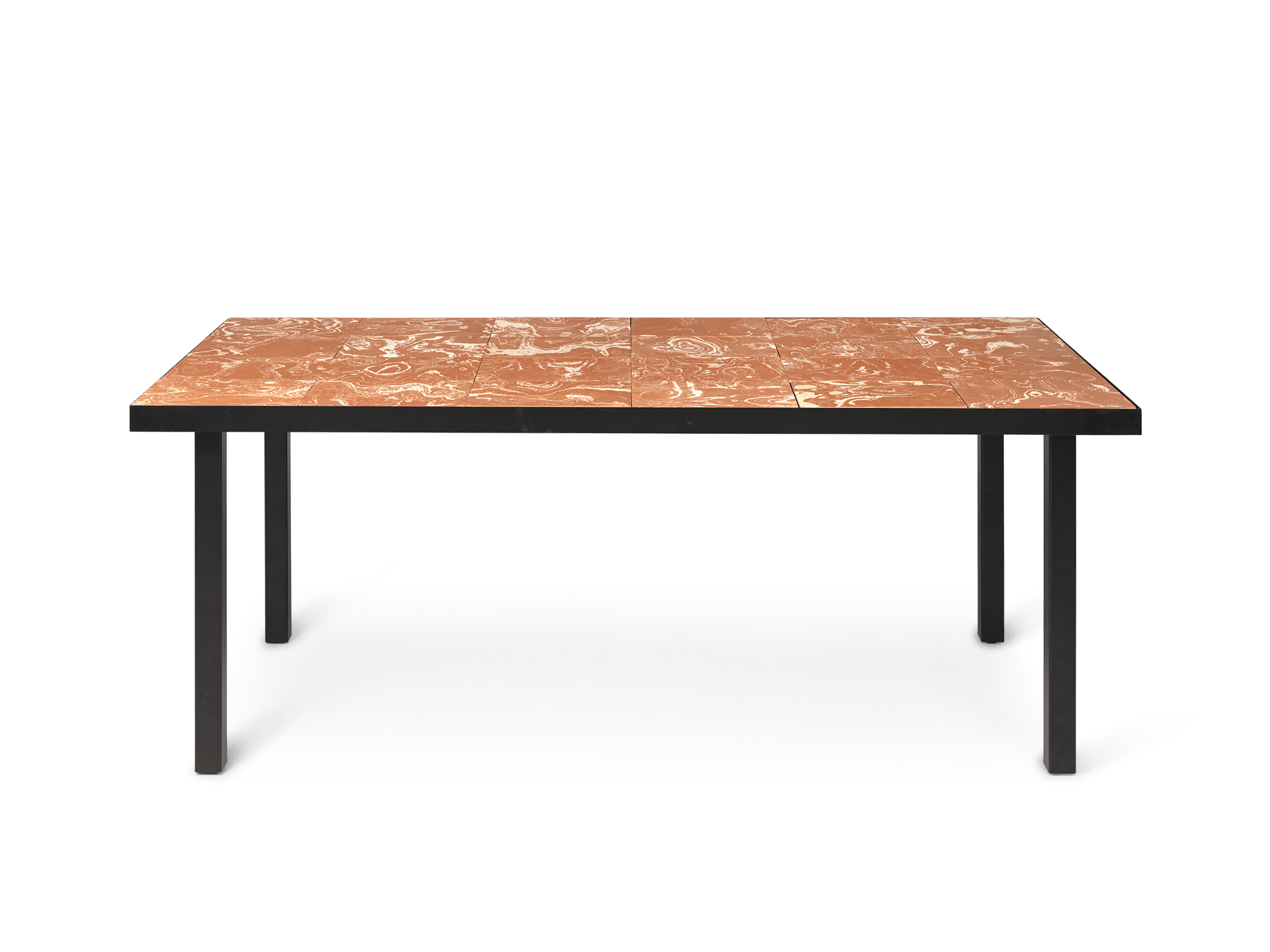 Uniendo forma y función, la mesa de comedor Flod presenta un marco gráfico y aerodinámico fabricado en acero galvanizado con recubrimiento en polvo que contrasta agradablemente con la textura cálida y natural de las baldosas de cerámica. Elaborados en Italia con la arcilla más fina del río Po, los azulejos tienen una rica textura y se han fabricado utilizando únicamente agua, fuego y manos humanas. Perfectamente adaptados para la vida interior y exterior, estos azulejos se colocan en el marco sin sellar, lo que permite que la lluvia o la humedad pasen suavemente entre la superficie de la mesa y a través del marco perforado.