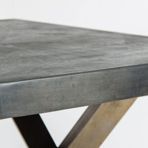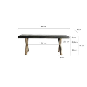 Mesa comedor kapie de estilo art deco fabricado en hierro en color oro combinado con madera de olmo. Producto desmontable.