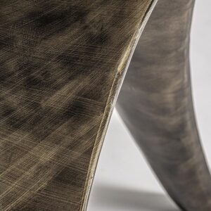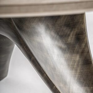 • Mesa comedor Laize de estilo art deco fabricado en travertino en color beige combinado con acero inoxidable en color oro con acabado viejo. Producto desmontable.
