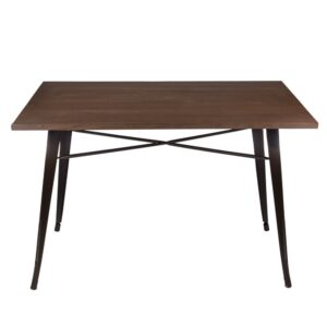Mesa de estructura y patas metálicas de color chocolate con matices cobre.