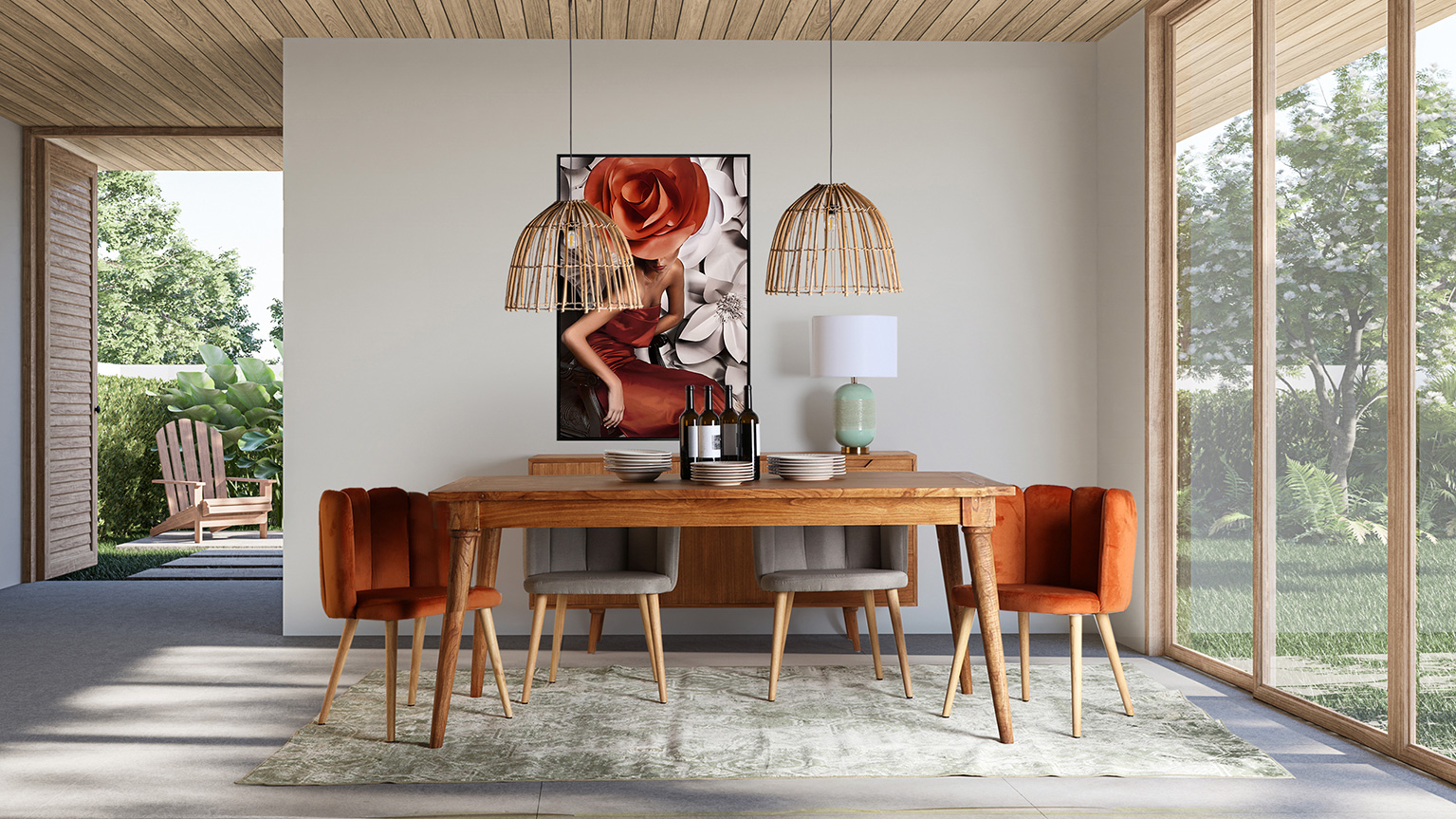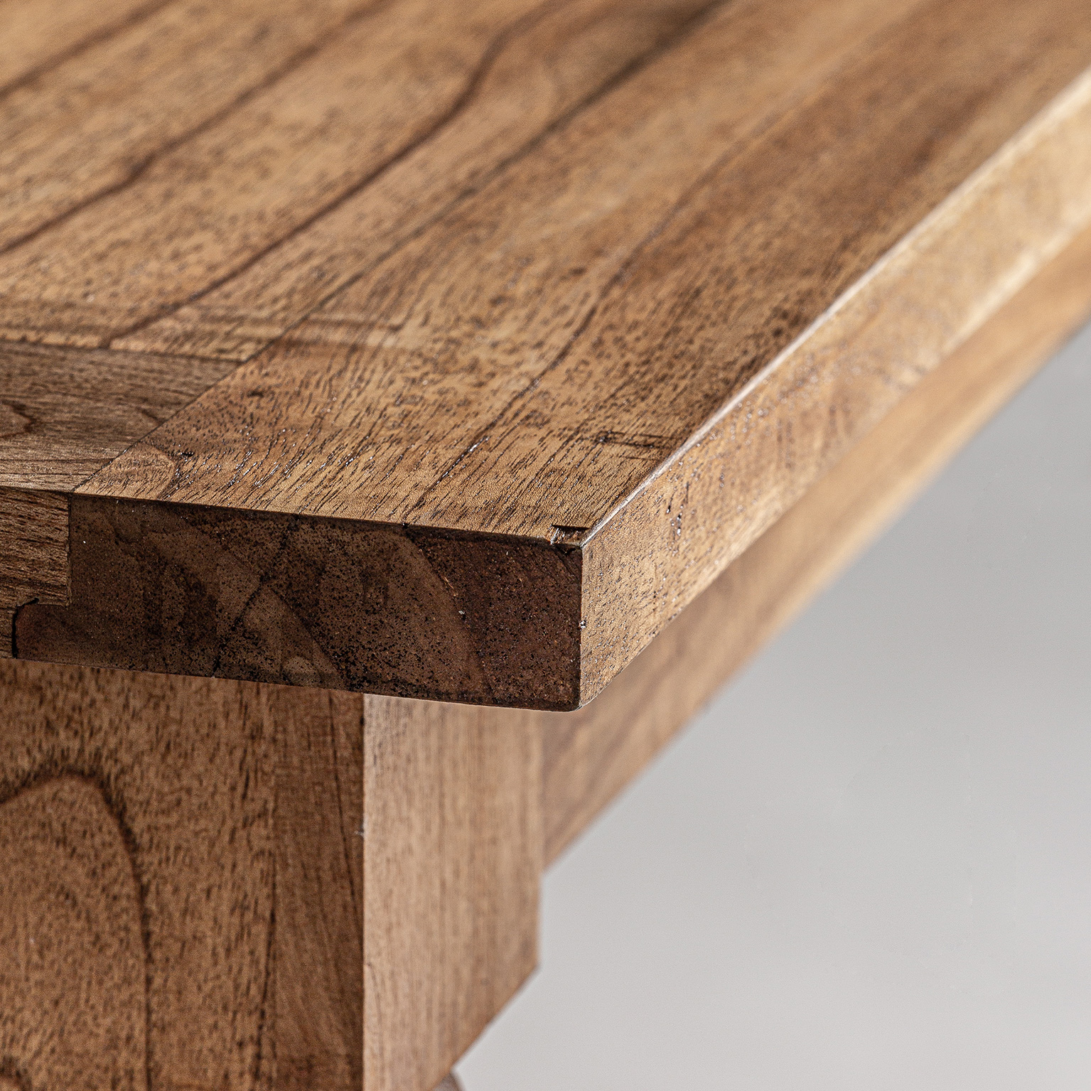 MESA COMEDOR MOSS, EN COLOR NATURAL, DE ESTILO NÓRDICO. FABRICADO EN MADERA MINDI. PRODUCTO DESMONTABLE.