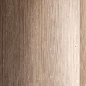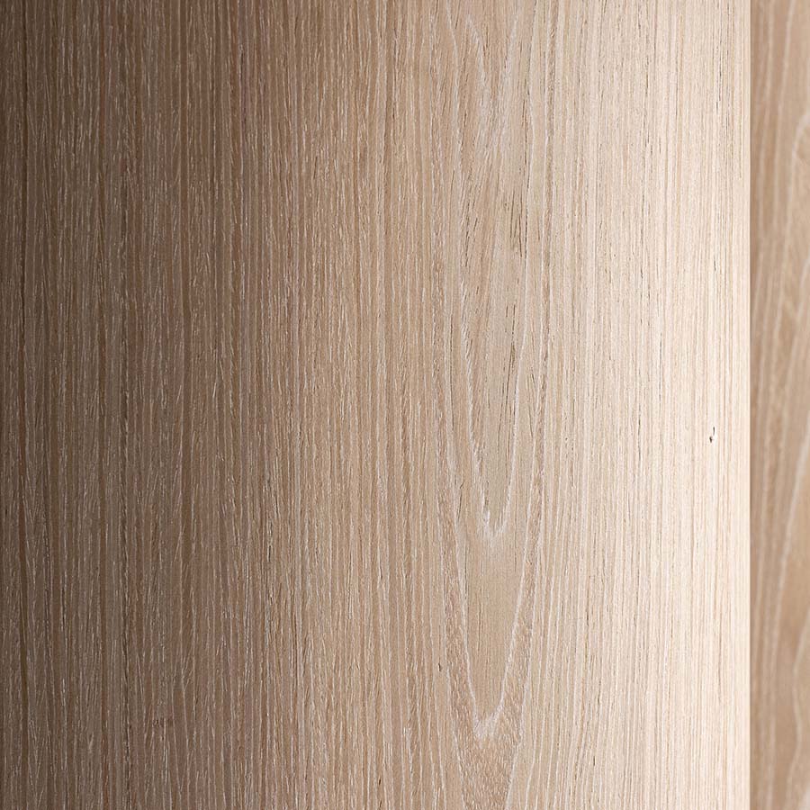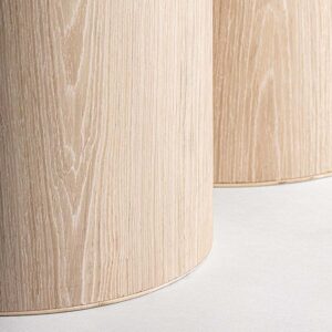 Mesa comedor Prayssac de estilo art deco fabricado en chapa de roble en color crema combinado con madera contrachapada y madera dm. Producto desmontable.