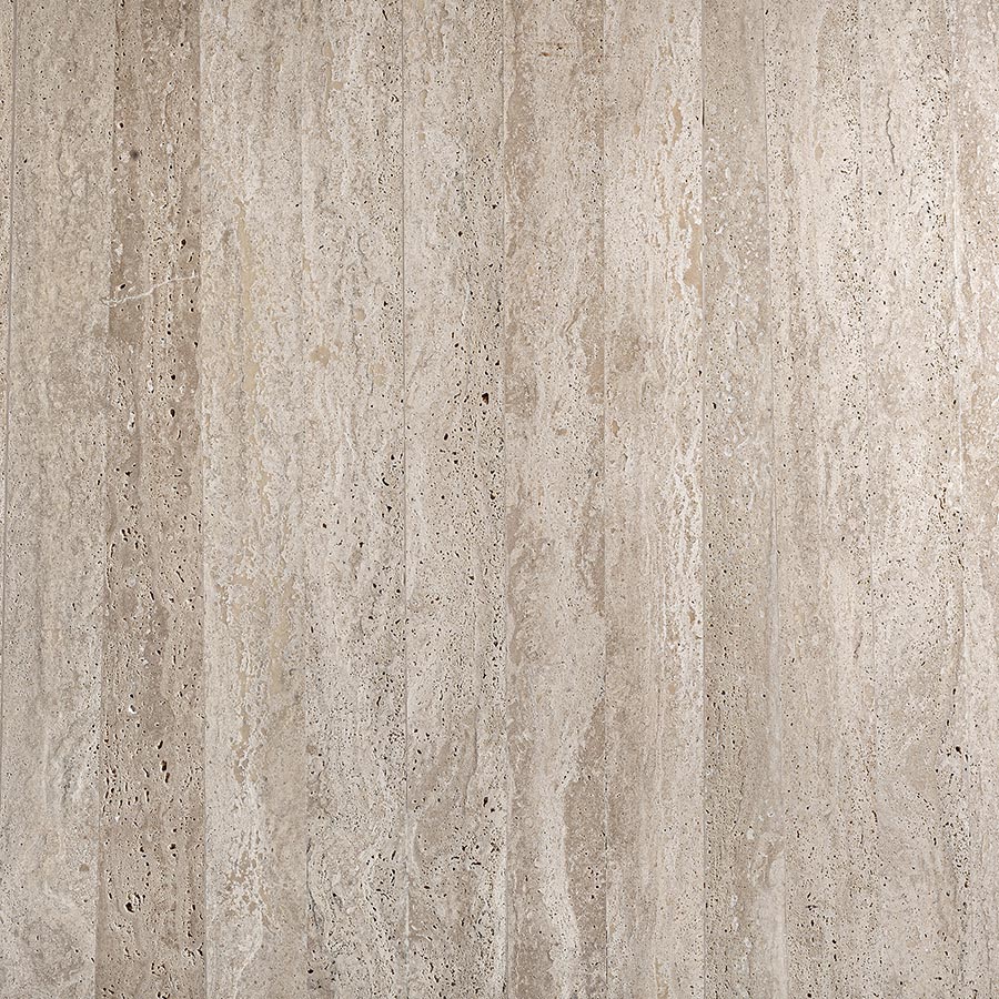 Mesa comedor Thiennes de estilo art deco fabricado en travertino en color marrón claro. Producto desmontable.