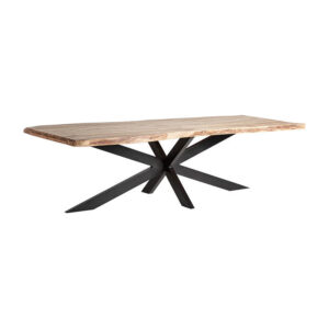 Mesa comedor viborg de estilo industrial fabricado en madera de acacia en color negro combinado con hierro en color marrón. Producto desmontable.