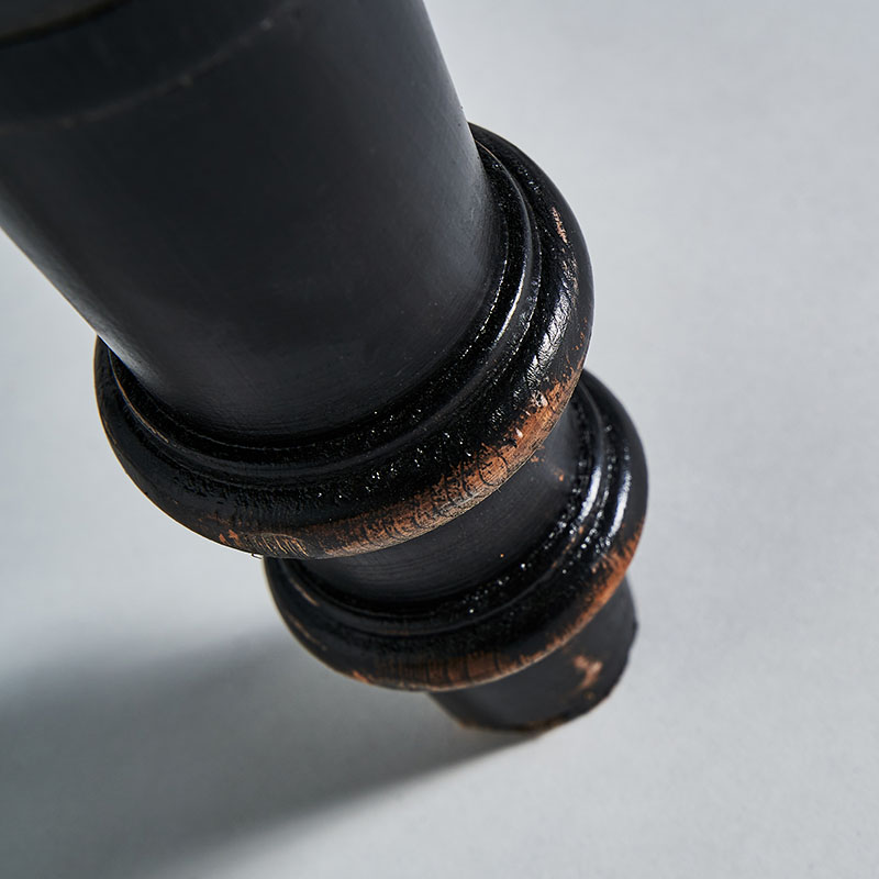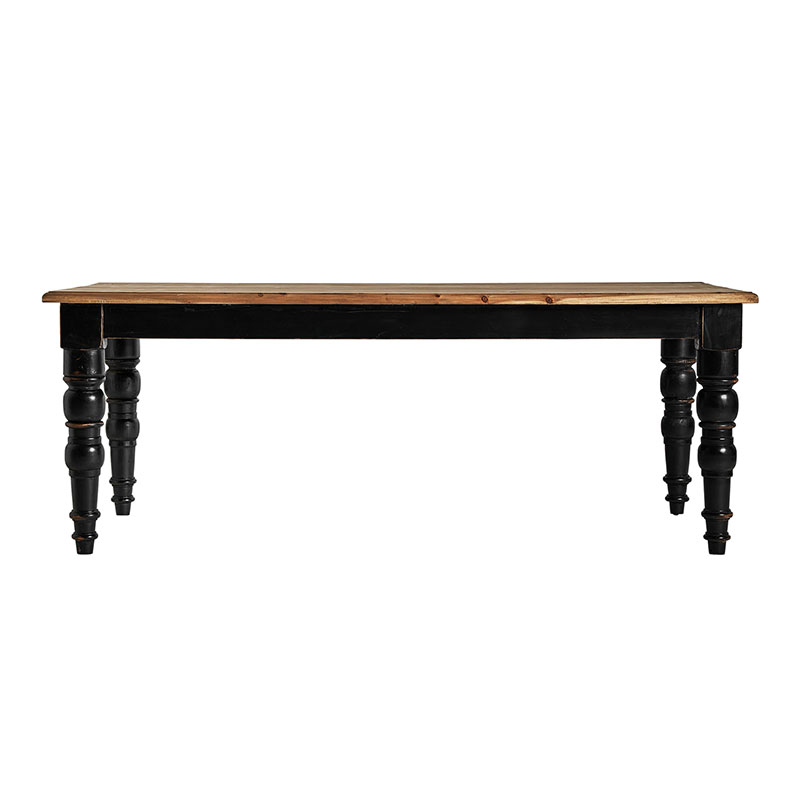 Mesa comedor zenica, en color negro/natural, de estilo provenzal. Fabricado en madera de olmo. Producto desmontable.