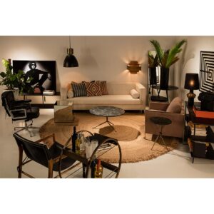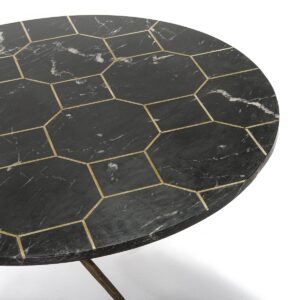 MESA DE CENTRO 80X80X44 MÁRMOL INCRUSTADO NEGRO/METAL DORADO ANTIQUE
