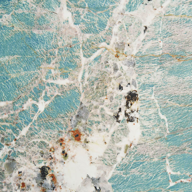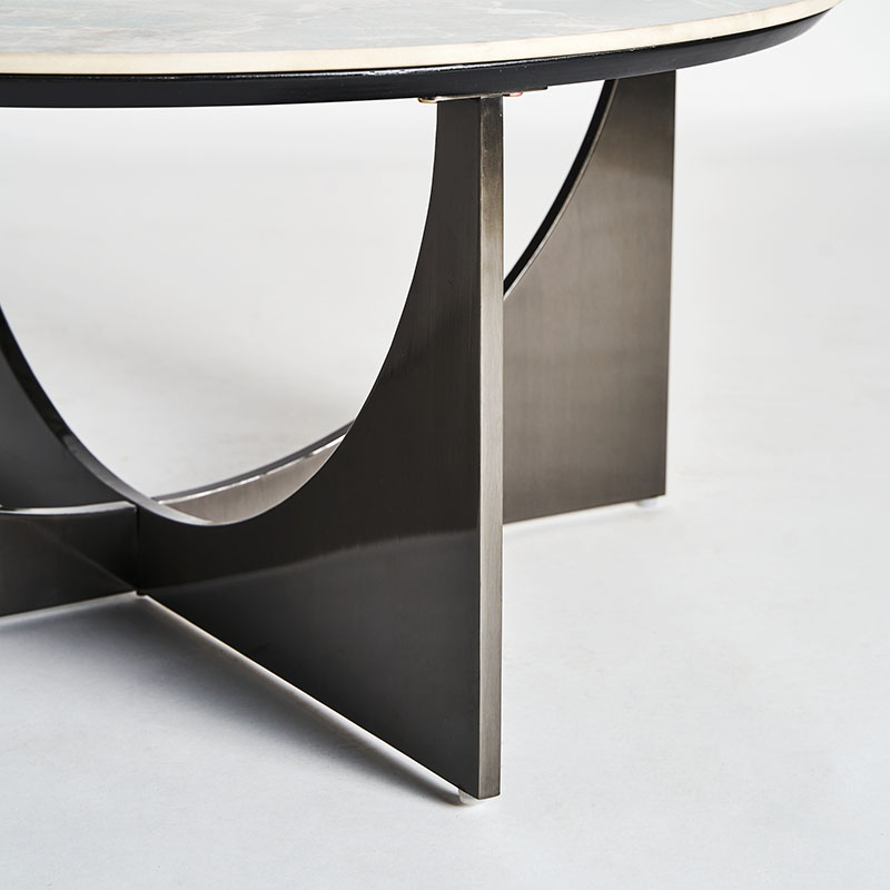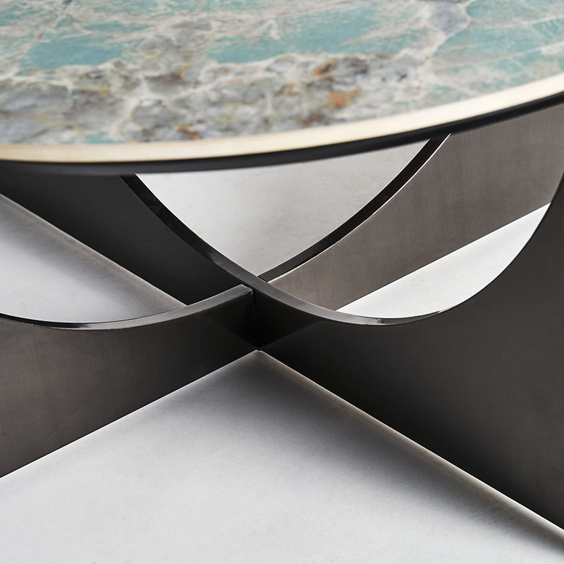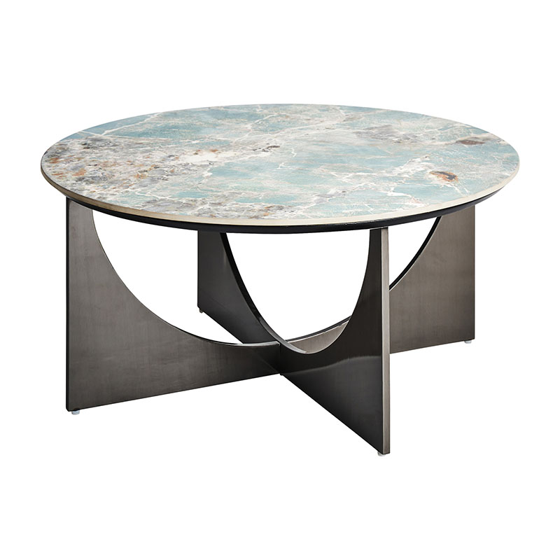 Mesa de centro aheim, en color verde/azul, de estilo art deco. Fabricado en acero, combinado con mármol sintético. Producto desmontable.