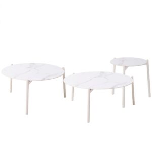 Mesa de centro aluminio y ceramica con dibujo efecto marmoleado. Mesa de centro aptas para uso exterior. Disponibles en varias medidas. Se venden por separado.