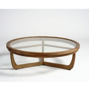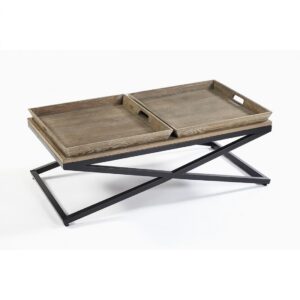 Mesa de centro badai, en color marrón tallado, de estilo étnico. Fabricado en madera de mango.