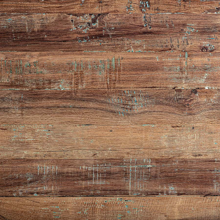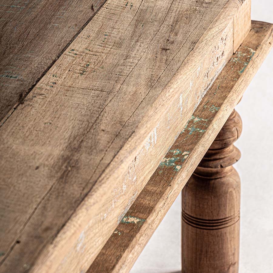 Mesa de centro carrik de estilo colonial fabricado en madera recuperada en color marrón.
