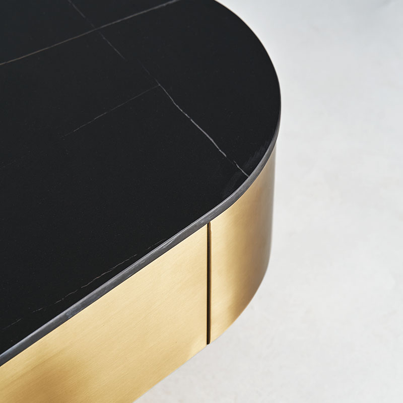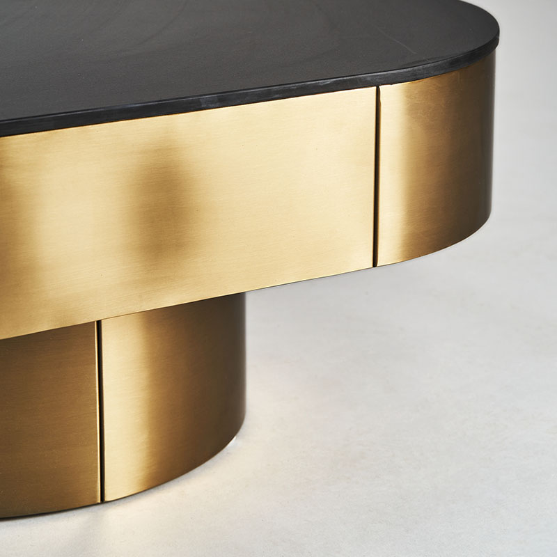 Mesa de centro davik, en color negro/oro, de estilo art deco. Fabricado en acero, combinado con mármol sintético.