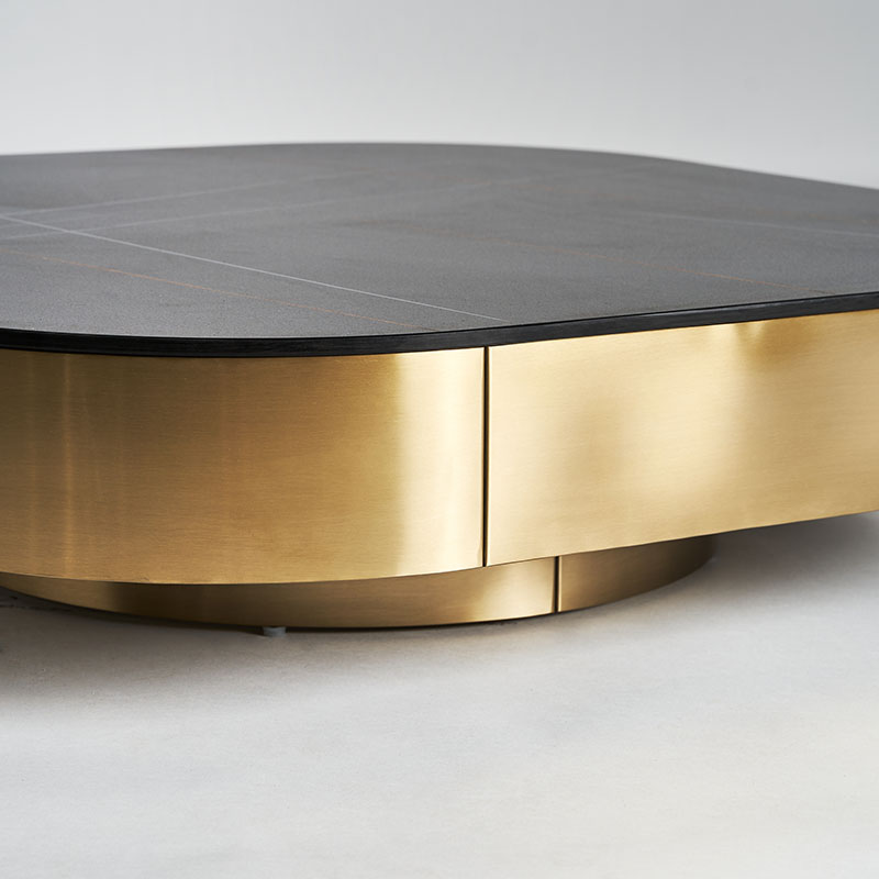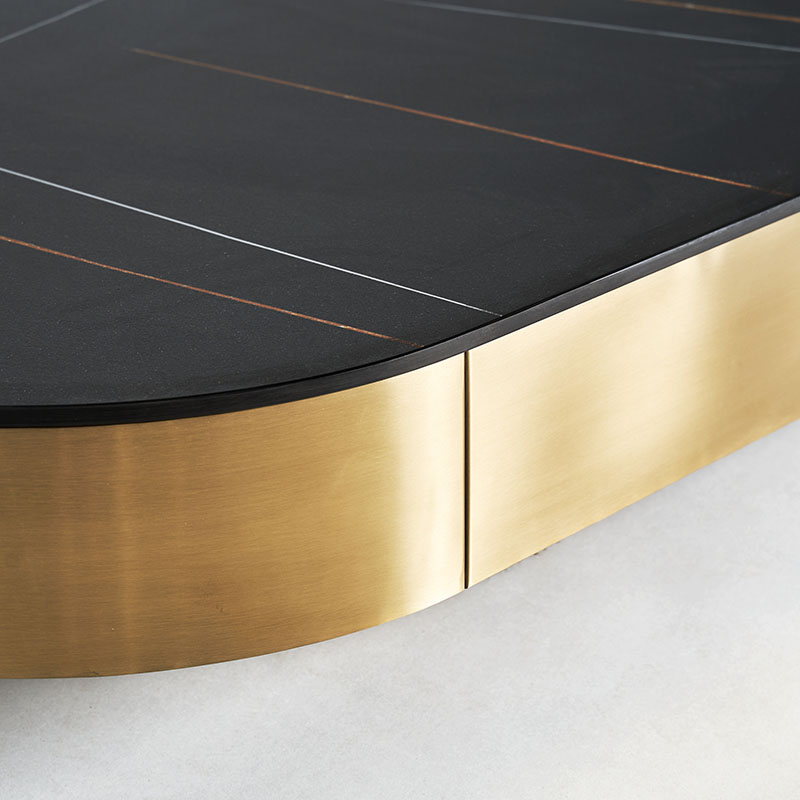 Mesa de centro davik, en color negro/oro, de estilo art deco. Fabricado en acero, combinado con mármol sintético.