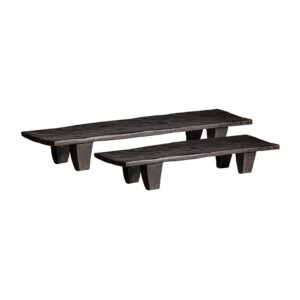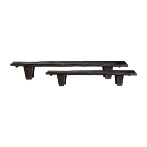 Mesa de centro Erara de estilo étnico fabricado en madera de teka en color marrón con acabado envejecido.