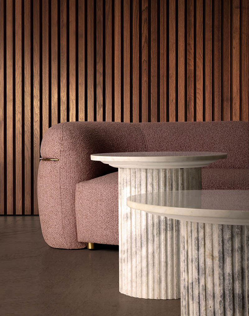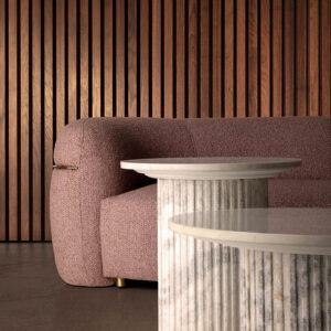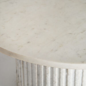 Mesa de centro esches de estilo art deco fabricado en mármol en color blanco combinado con madera. Producto desmontable.