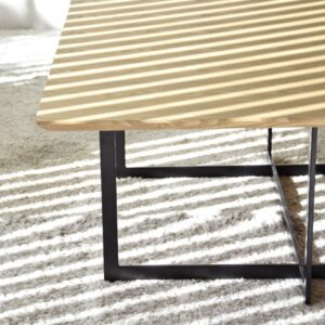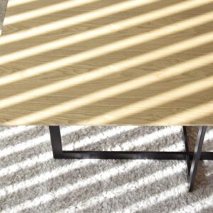 MESA DE CENTRO CUADRADA. SOBRE REALIZADO EN TABLERO DE DM RECHAPADO EN MADERA FRESNO NATURAL CON CIERTA TEXTURA QUE REALZA LA VETA NATURAL DE LA MADERA. PATAS EN HIERRO NEGRO MATE. LA LUMINOSIDAD Y NATURALIDAD DEL FRESNO COMBINADAS CON EL NEGRO DE LA BASE CONVIERTEN ESTA MESA EN UNA PIEZA PERFECTA PARA CUALQUIER ESTILO.
