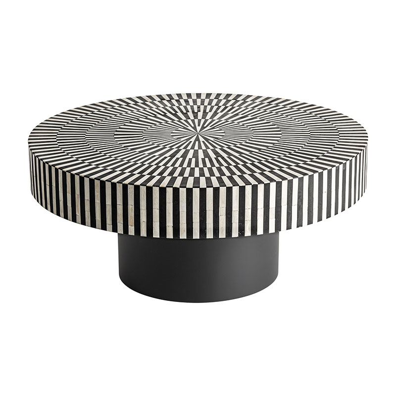 Mesa de centro gatsby, en color negro/blanco, de estilo art deco. Fabricado en madera dm, combinado con hueso.