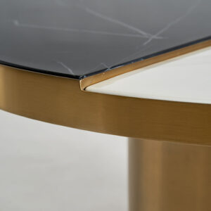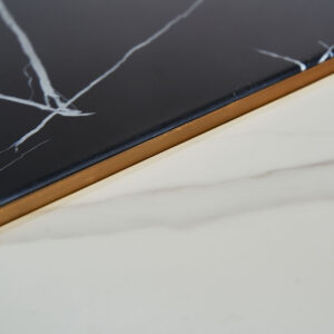 Mesa de centro Grein de estilo art deco fabricado en acero en color negro combinado con cerámica en color blanco en color oro.