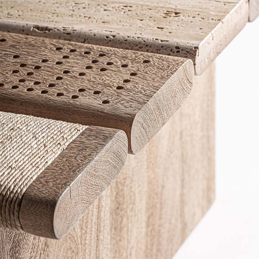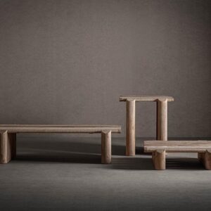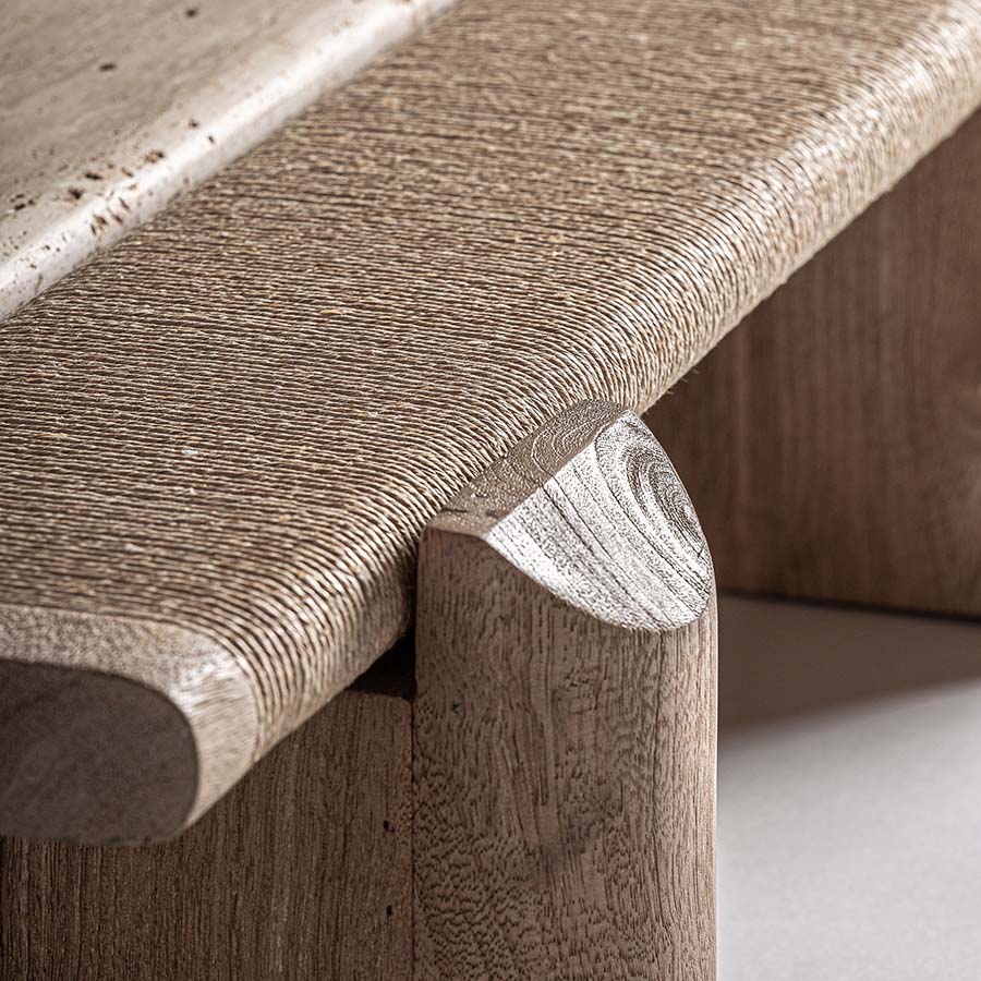Mesa de centro Theuville de estilo art deco fabricado en travertino en color beige con acabado mate.