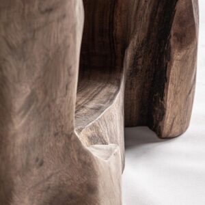 Mesa de centro khaled de estilo étnico fabricado en madera suar en color marrón con acabado natural.